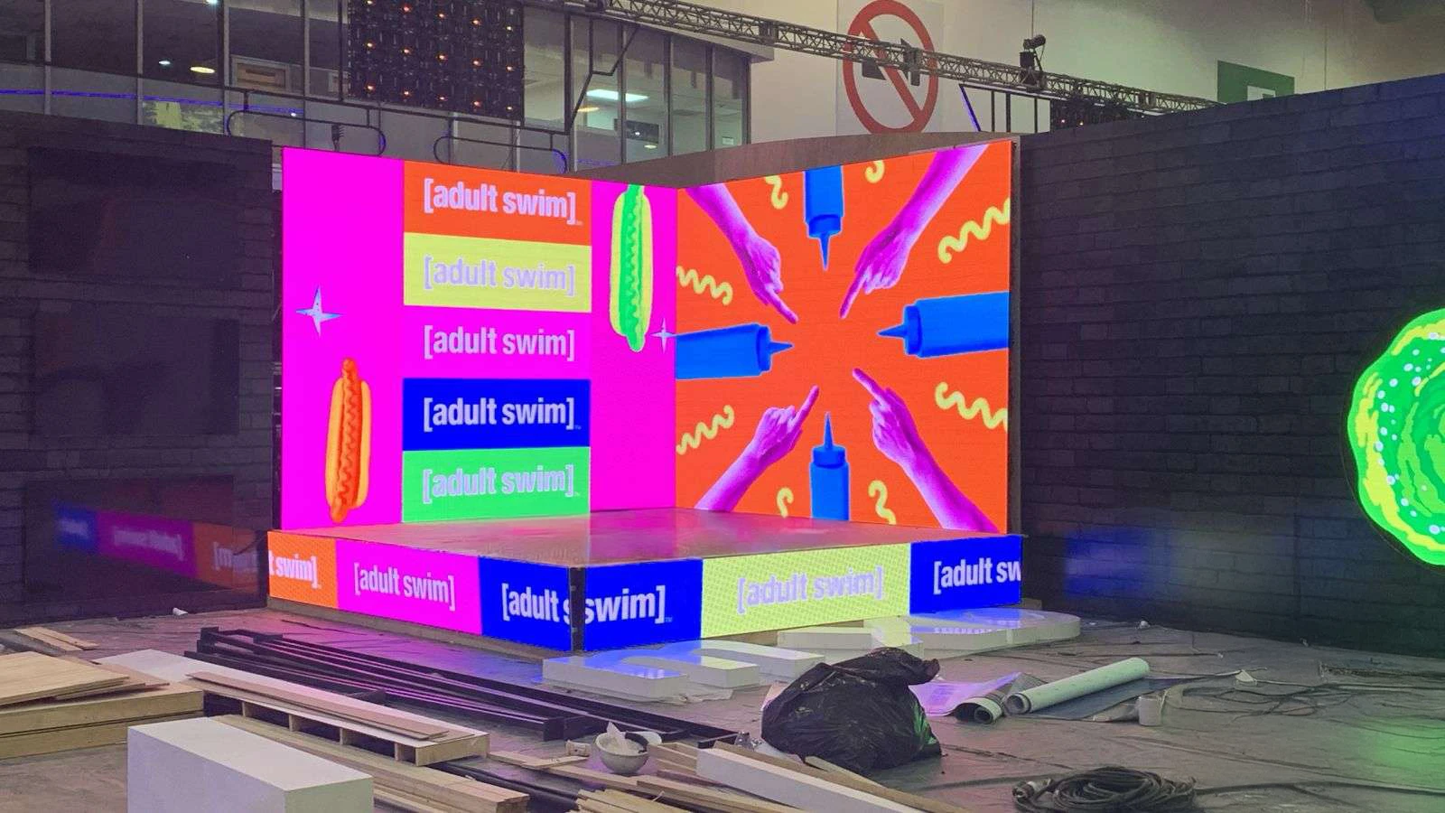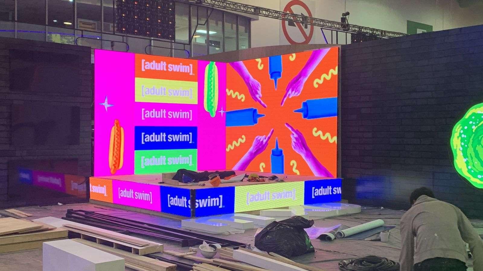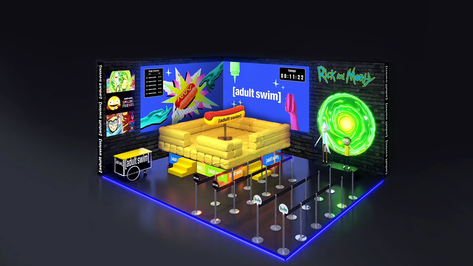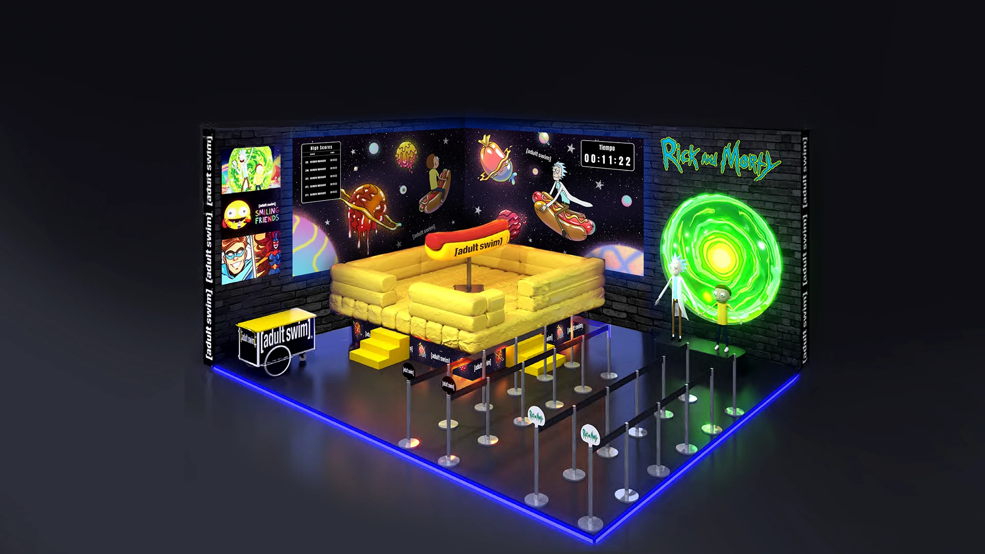 For the first-ever edition of CCXP in Mexico, Adult Swim needed a physical activation that would translate its chaotic, irreverent, and surreal DNA to the Latin American audience. The production company Mooco led the visual project and invited me to join the creative team with a clear objective: to bring life and movement to a universe where nonsense is the rule.